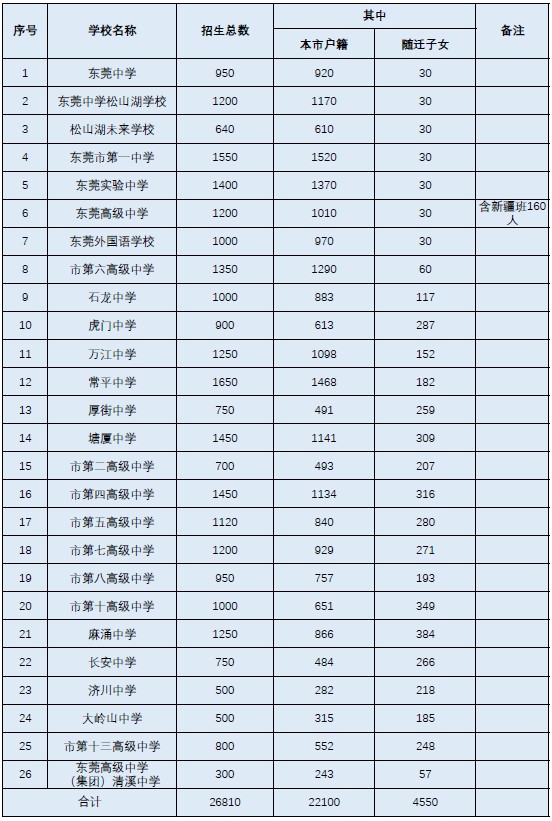 2022年?yáng)|莞市普通高中招生計(jì)劃(公辦),東莞中學(xué) 招生總數(shù)950人,面向全市招收本市戶籍考生人數(shù)920人,面向全市招收隨遷子女考生人數(shù)30人,更多詳情見(jiàn)正文....