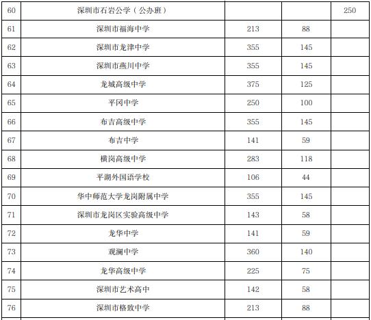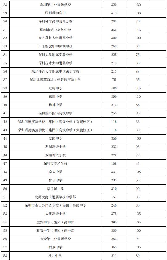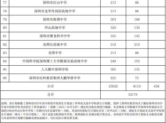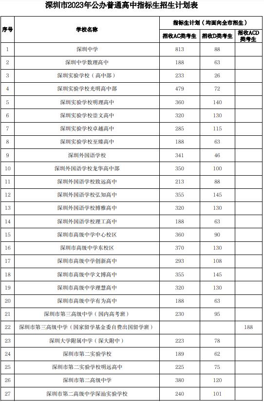 深圳市2023年公辦普通高中指標生招生計劃表